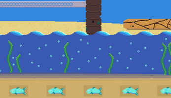These waters are awfully shark infested and the fish don't appreciate being eaten, your job is to help the fish leave these waters.