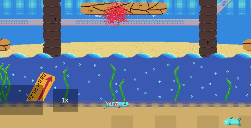 the game is really good art wise and the concept is fun and engaging but it is quite hard, a good thing is that there is controls and text telling the player what to do , but the art style is really good and same with the sound design , it has an underwater theme which fits well, i think some exta sound affects would be good for things like the fish jumping and maybe for when the meter moves up and down